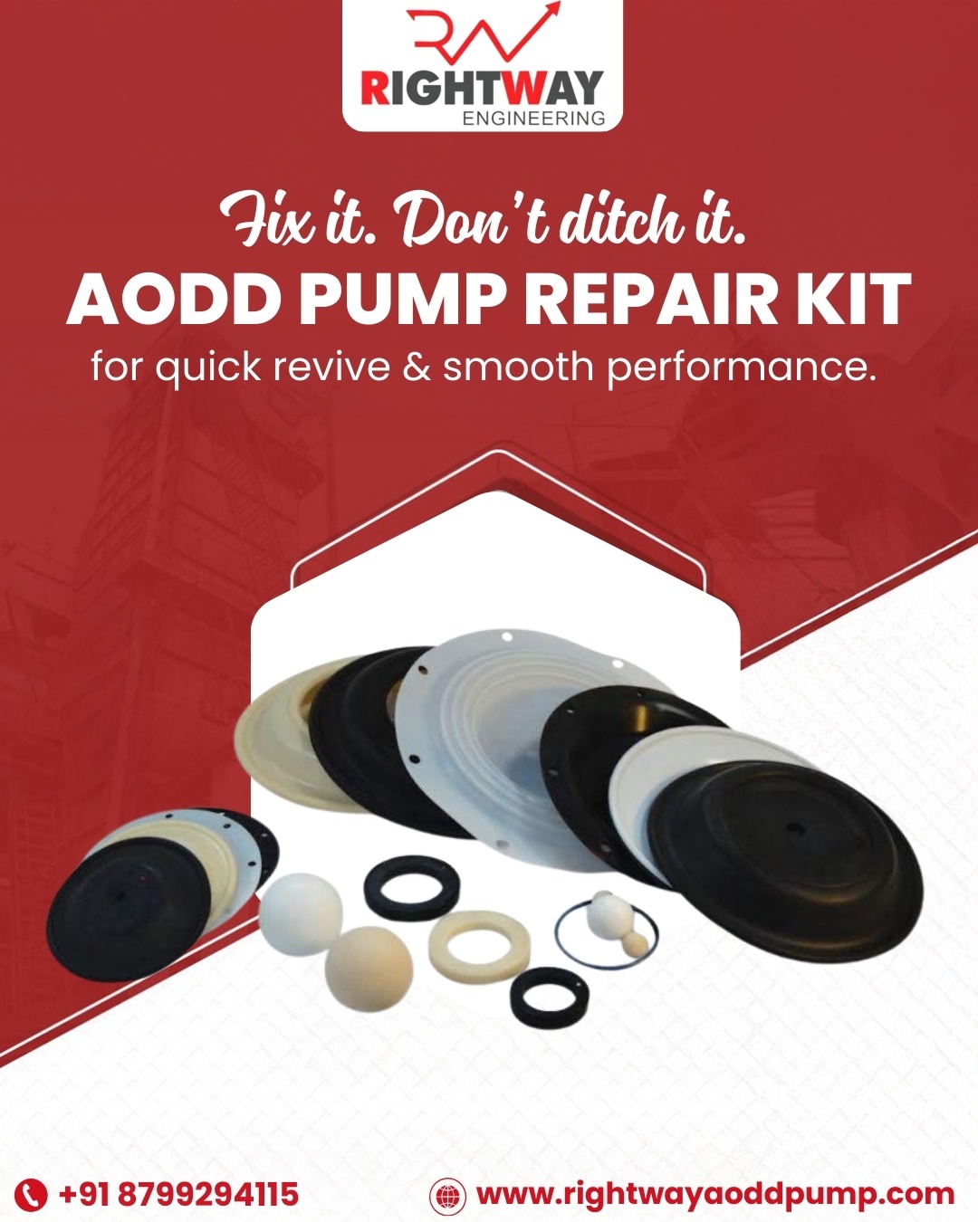 Restore your pump performance with a premium AODD Pump Repair Kit—contact Rightway Engineering today!